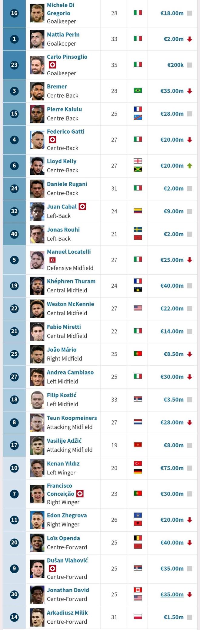 - 2025/12/24尤文球员身价变动:布雷默降1500万欧元,